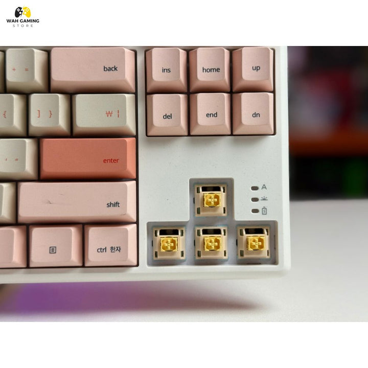 Equipped with Peach Soda custom linear switches, the keyboard delivers a smooth typing experience. Thanks to its hot-swappable design, you can easily change switches without soldering.