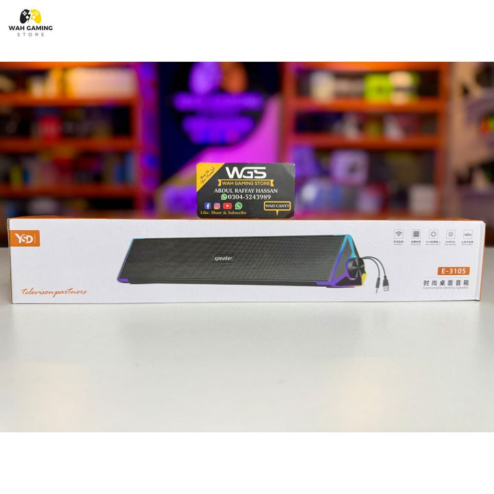 Turn your desk into a mini home theater with the YSD E-3105 RGB Bluetooth Soundbar Speaker. Slim, stylish, and powerful – it’s designed to sit neatly under your monitor or laptop, saving space while delivering clear stereo sound.